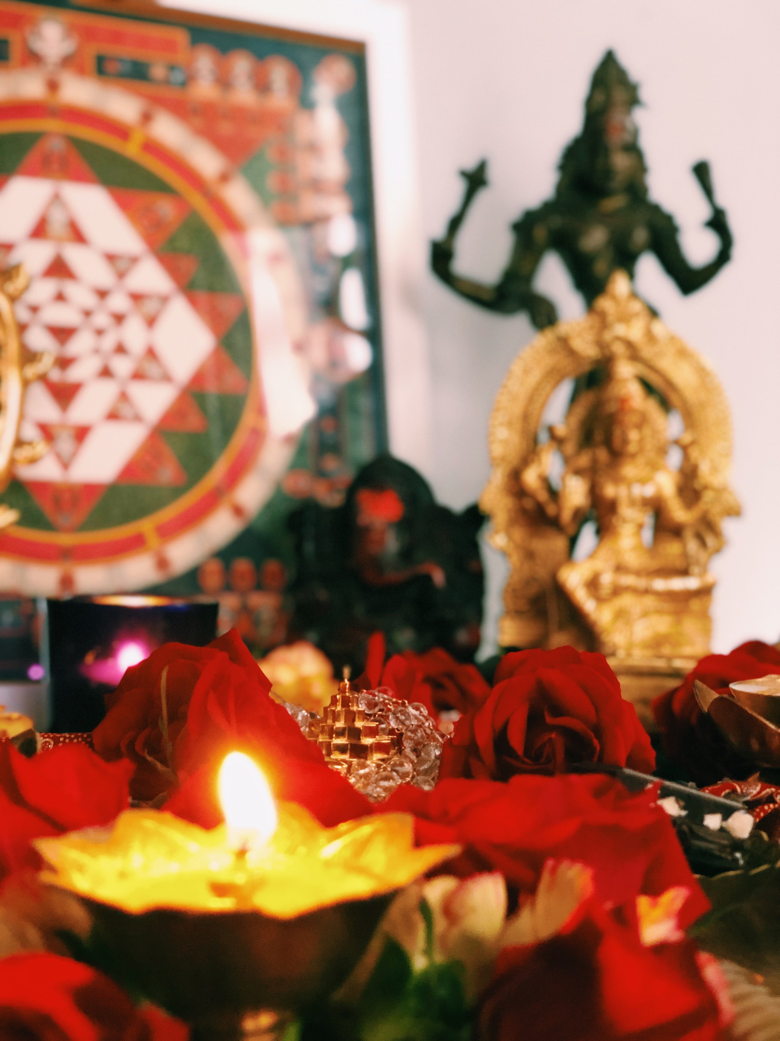 We meet fortnightly. Each month features a teaching session, deep practice session, puja, and time for sharing and learning in community, and 1:1 sadhana mentoring from Nataraj.